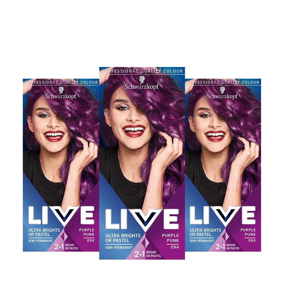 Purple Live Hair Dye : Schwarzkopf Live Colour Ultra Brights Purple Punk 094 Expresschemist Co Uk Buy Online. Always opt for applying the strongest, deepest permanent purple color available. 5 choosing the right shade. Colour results will depend on your natural hair colour. How i dyed my natural black hair purple, using schwarzkopf home hair colour. Photos of purple hair dyeing examples in our purple hair pictures gallery!